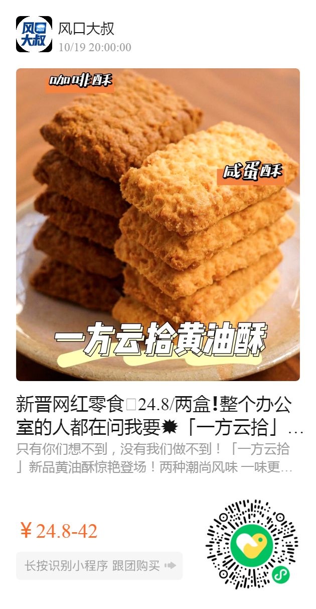 新晋网红零食🤩24.8/两盒❗️整个办公室的人都在问我要💥「一方云拾」新品2个口味绝了!黄油咸蛋酥+黄油咖啡酥❗比秋天的奶茶更走心哇❗❗浓香酥脆好吃度爆表!