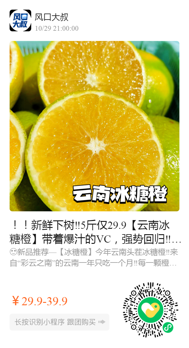 !!新鲜下树‼️5斤仅29.9【云南冰糖橙】带着爆汁的VC,强势回归‼️现摘现发!纯天然生长,仅1%的人吃过,满满维C 💥 被阳光青睐!冰爽清甜、水嫩化渣、甜如冰糖自带柠檬香,只一口就会沦陷! 生津止渴,润喉去燥😎秋冬季的补水神器!