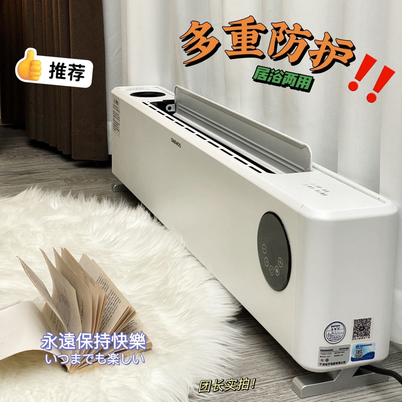 【大宇AK2210升级款踢脚线取暖器】💥月销2万➕京东售749,开团549开机3️⃣秒制热,取暖无需等待❗️ ✅机身全新升级采用磨砂材质,负离子净化空气减少细菌🦠滋生‼️ ✅智能恒温,5-35 °C任意调节❗️居浴两用,IOX4级防水功能,童锁设置,过热保护等多重安全保障❗️