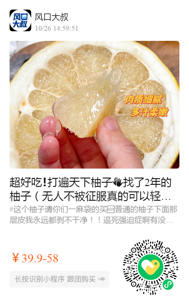 超好吃❗️打遍天下柚子找了2年的柚子(无人不被征服 真的可以轻松的剥下完整的果肉玉环人家乡的味道【玉环文旦柚】 中华第一柚 ‼️️柚子还是这个香️脆嫩多汁,直接在口中爆开💥清甜可口,口感丰富🤤一点都不粘皮!超轻松剥皮果皮还能当空气清新剂🏻 🔺放几天会更甜哦~