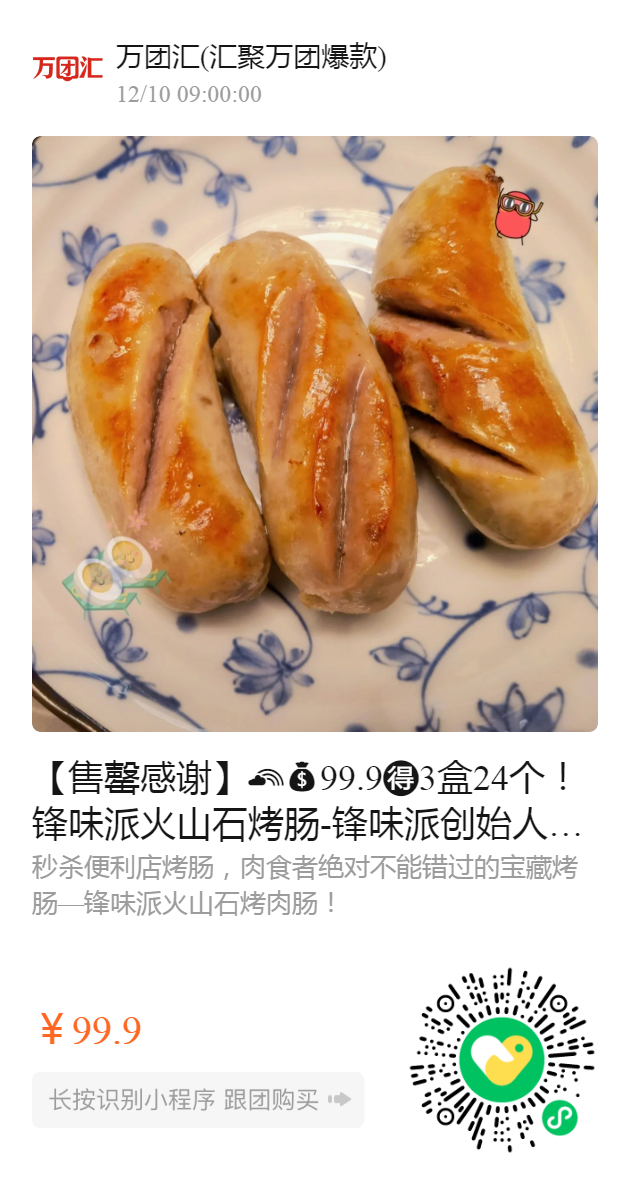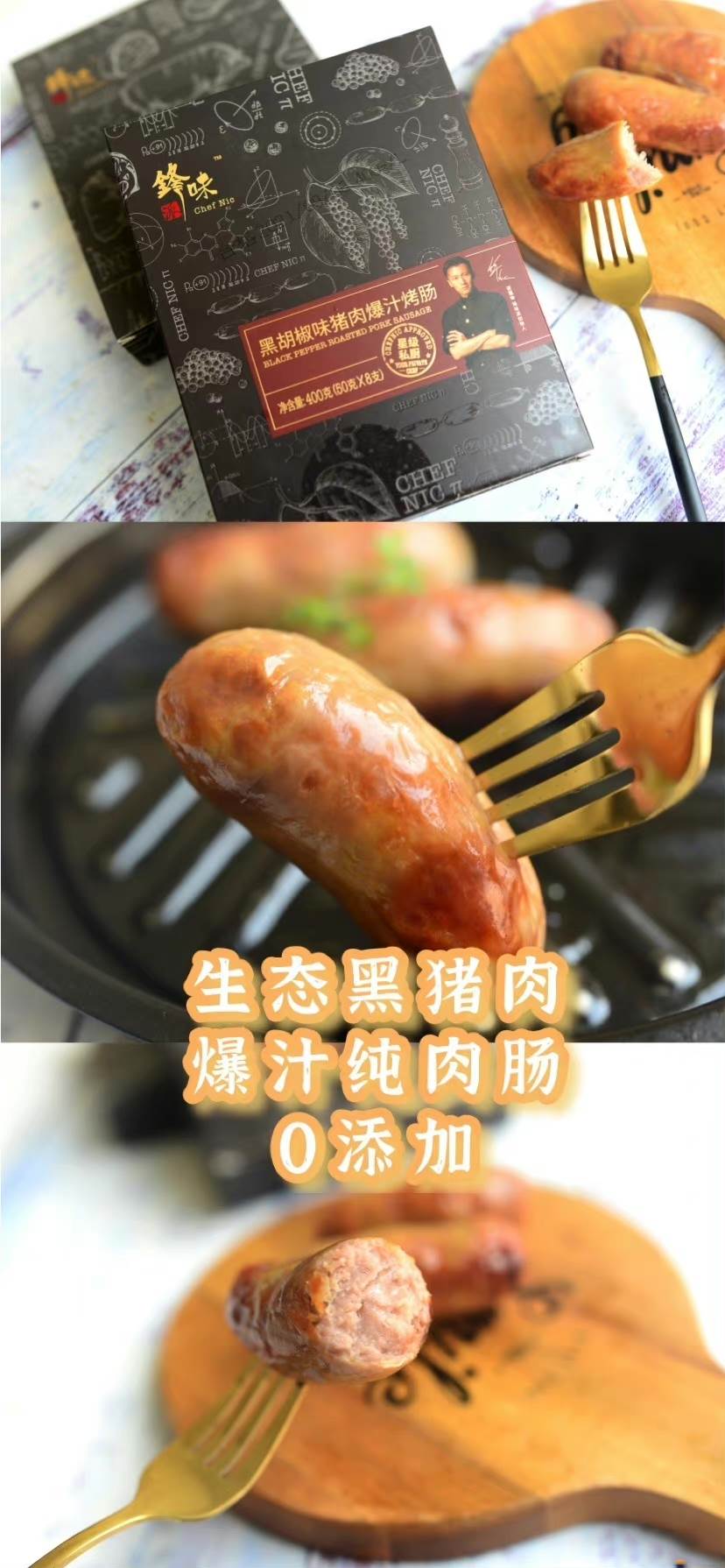 【售罄感谢】99.9️3盒24个!锋味派火山石烤肠-锋味派创始人谢霆锋!爆汁纯肉,一口满足! 精选南阳天然散养黑猪后腿肉,肉质紧实,营养价值高,口感超级好!0淀粉,纯肉只做1.5:8.5黄金配比,肥而不腻,瘦而不柴,噗嗤下去,一口爆汁!0防腐剂、0香精、0亚硝酸盐,安全放心!