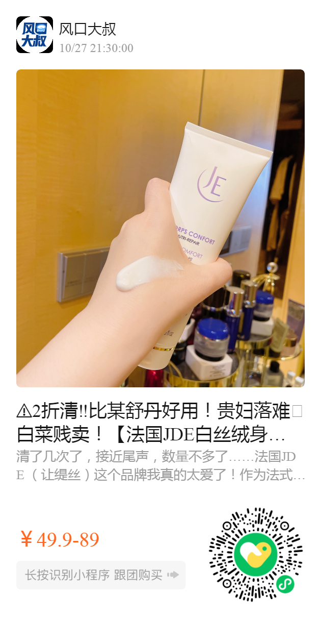 ️2折清‼️比某舒丹好用!贵妇落难🥬白菜贱卖!【法国JDE白丝绒身体乳250ml】能抗老美白的身体乳!面部精华级的!好吸收,不黏腻!