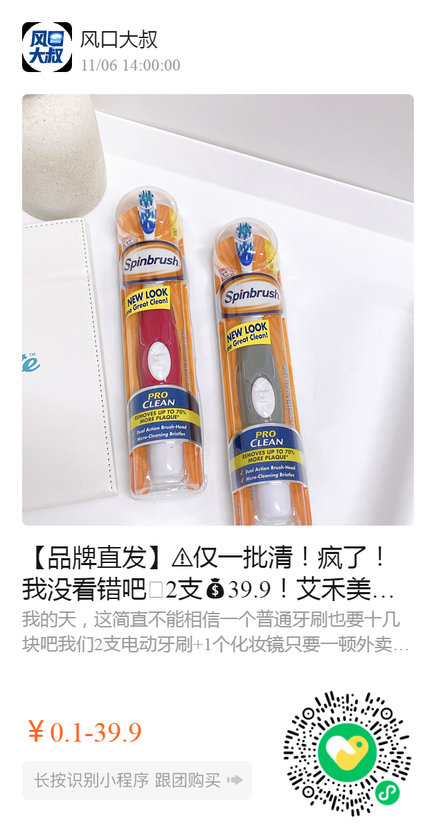 艾禾美电动牙刷❗️自带电池,清仓白菜价🥬成人款!