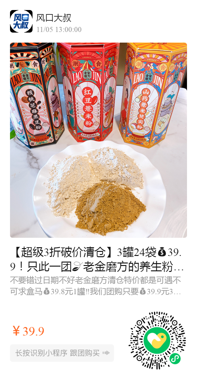 【超级3折破价清仓】3罐24袋39.9!只此一团老金磨方的养生粉来了红豆薏米粉|山药薏米芡实药薏米粉,养生必备!