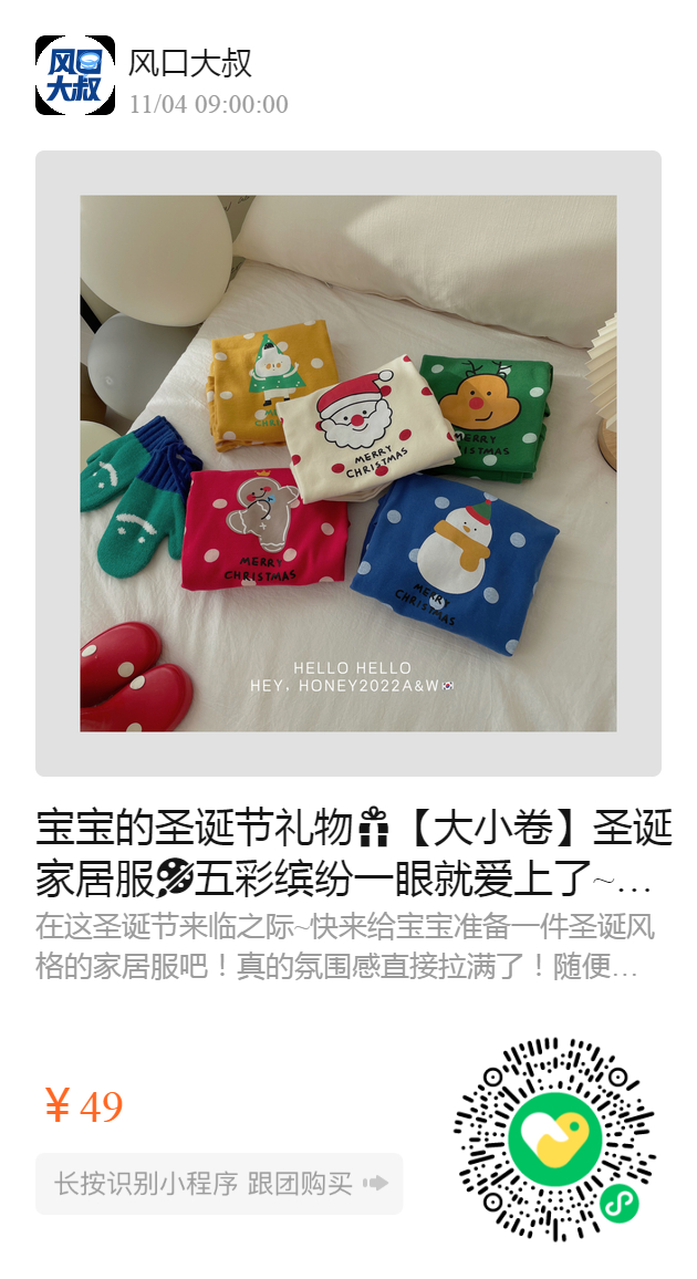 宝宝的圣诞节礼物【大小卷】圣诞家居服五彩缤纷一眼就爱上了~ 拉架棉面料贴身穿也超舒服!这样一套只需49我的天! 经典的波点元素搭配上圣诞元素真的好搭~