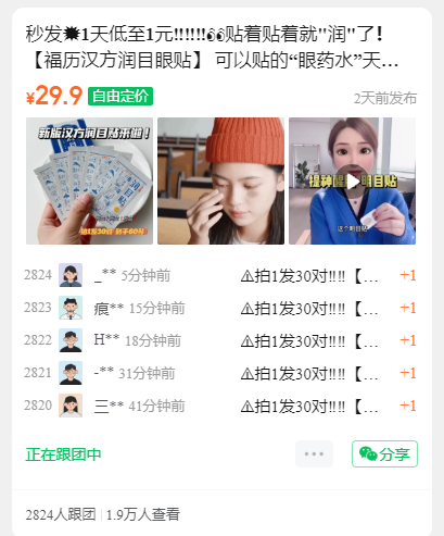 可以贴的“眼药水”天猫1盒5对29.9元!