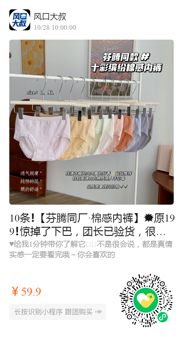 10条❗【芬腾同厂·棉感内裤】💥原199❗️惊掉了下巴,团长已验货,很赞🏻 ✅纯棉抑箘底布,透气吸湿、干爽不粘腻 ✅弹力包臀设计,舒适贴合,不夹pp ✅云朵般绵密的触感,呵护敏感肌 尺码到80~170斤,这个价格错过不会再有‼️