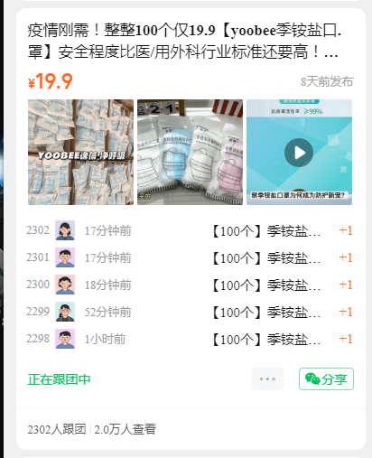 开 团 数:2302