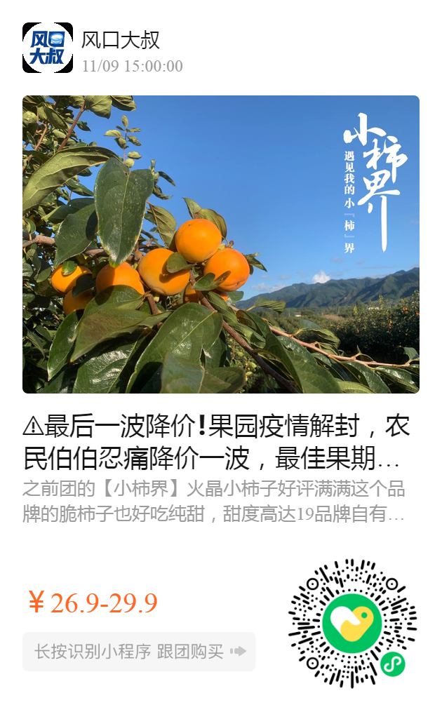 ️最后一波降价❗️果园疫情解封,农民伯伯忍痛降价一波,最佳果期,纯甜脆柿!还是火晶柿子那家的另一个品种!