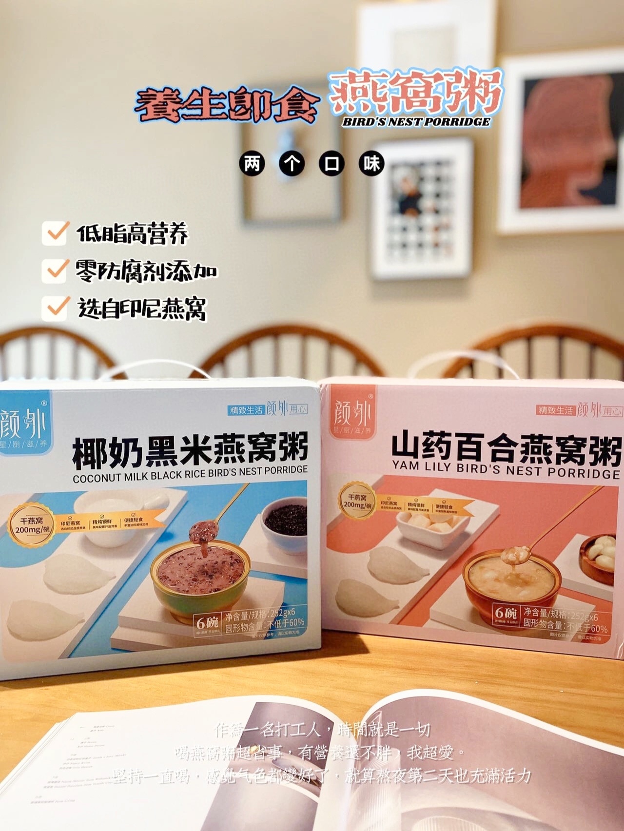 ❗️双十一活动‼️买一箱再送1碗✅低卡低脂💥真材实料,看得见的营养【颜外燕窝粥】椰奶黑米、山药百合、阿胶八珍三个口味可选! 一箱6碗,每碗足足200mg干燕窝含量‼️揭开就是香醇奶香,舀一勺肉眼可见的燕窝😋美容养颜又能增强免疫力,饱腹感强 方便即食 补气补血 低脂代餐样样皆可✅