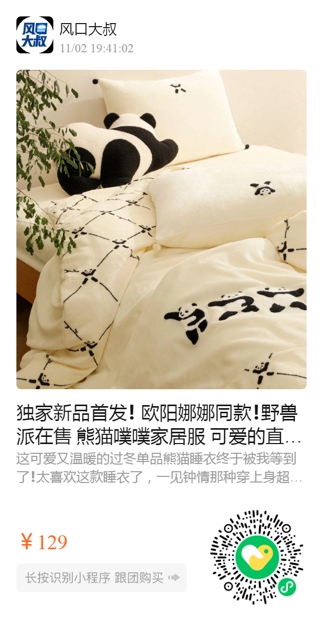独家新品首发❗️ 欧阳娜娜同款❗️野兽派在售 熊猫噗噗家居服 可爱的直接想带回家 软糯亲肤 呈优雅光泽度️进口舒柔法兰绒 原厂面料 区别市场货