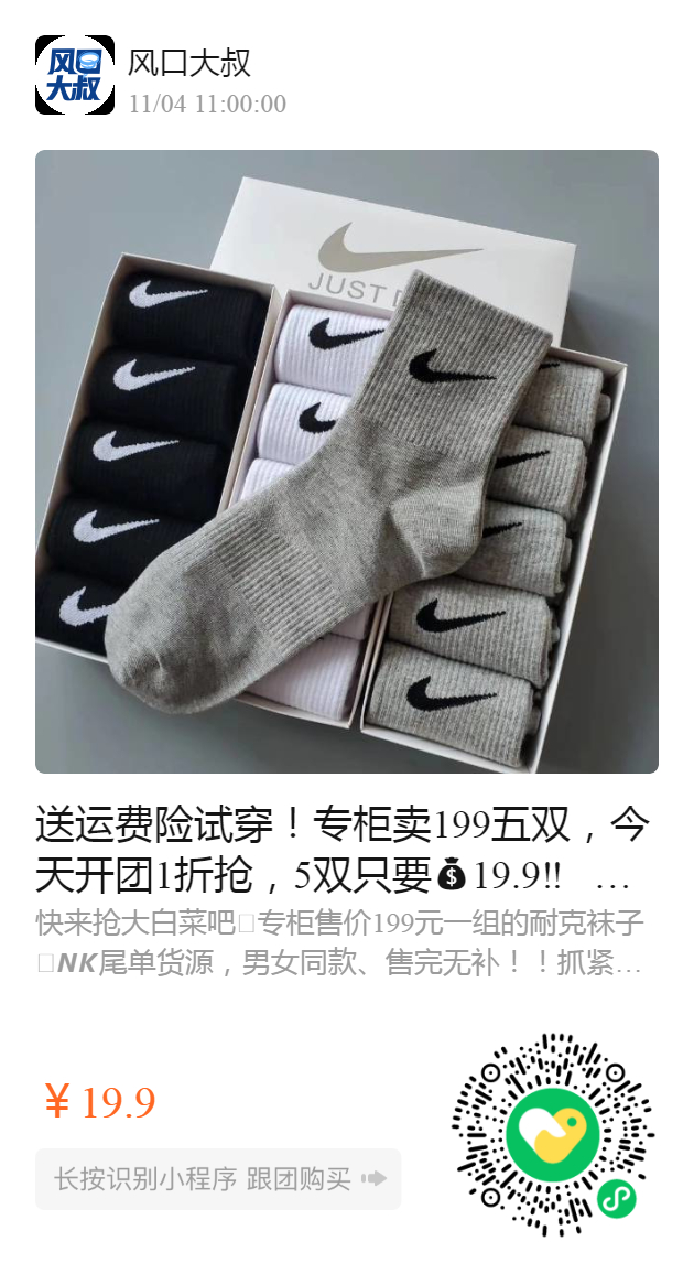 送运费险试穿!专柜卖199五双,今天开团1折抢,5双只要19.9‼️ 耐克同款中筒训练袜品牌尾单!实拍巨好品质 快来抢大白菜吧🥬专柜售价199元一组的耐克袜子🧦 𝙉𝙆同款尾单货源,男女同款、售完无补!! 抓紧抢购哈,不臭脚🦶36-44码的脚都可以穿