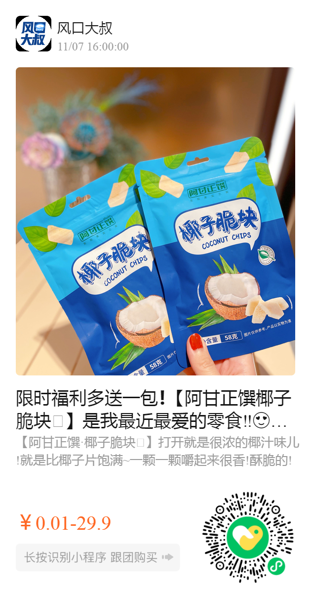 限时福利多送一包❗️【阿甘正馔椰子脆块🥥】是我最近最爱的零食‼️超好吃啊~