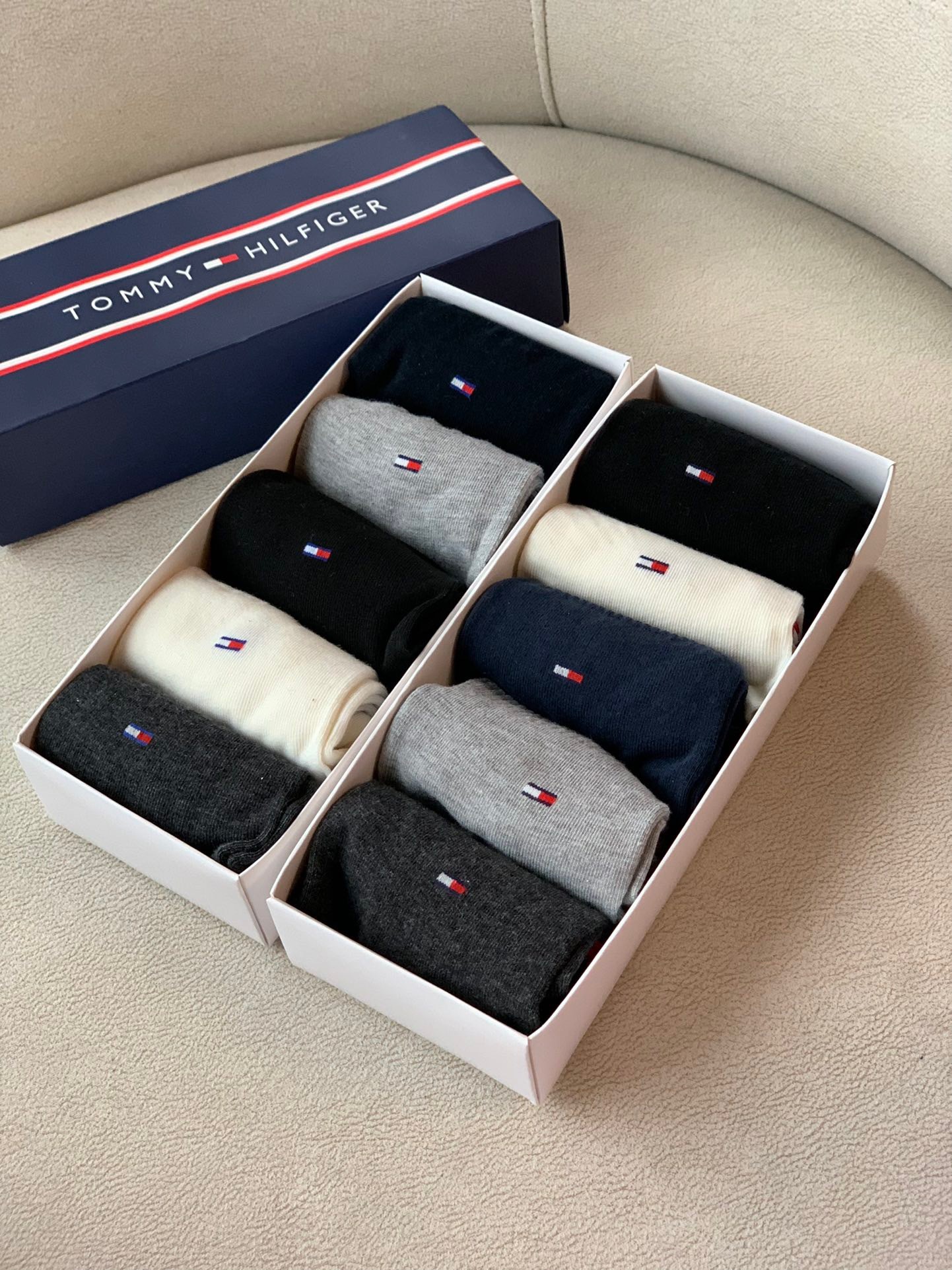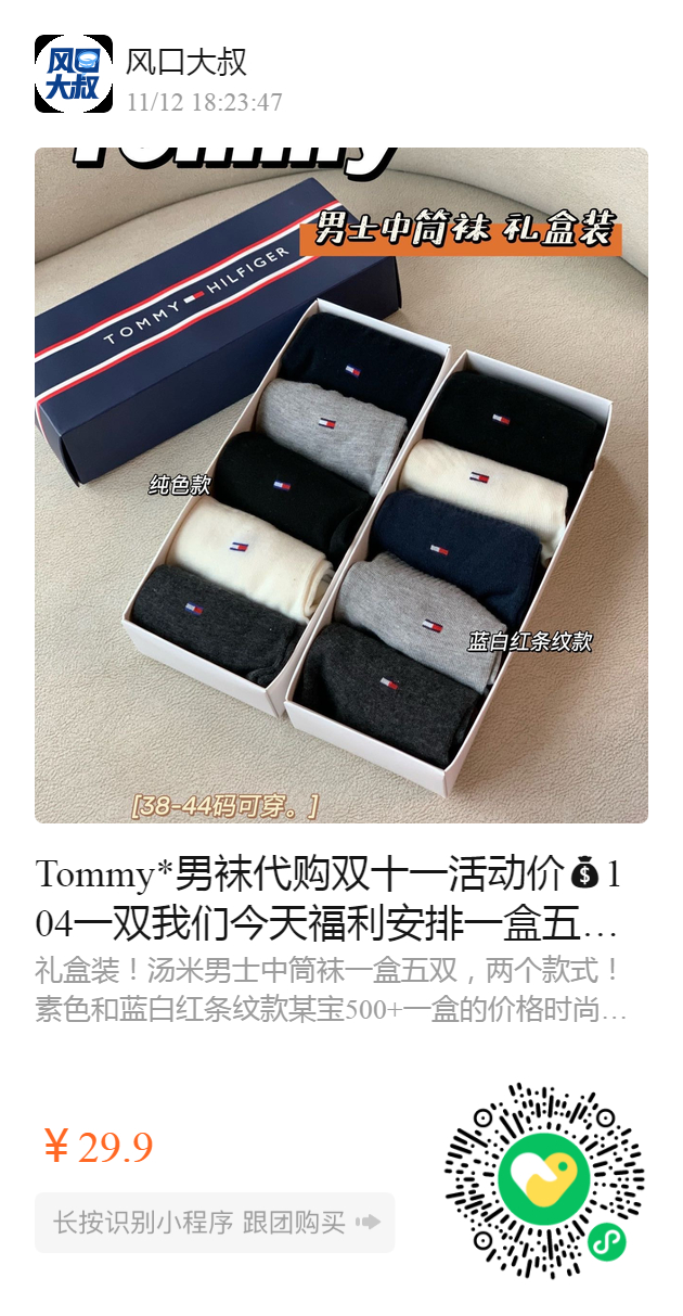 Tommy*男袜 代购双十一活动价104一双 我们今天福利安排 一盒五双,两个款式! 素色和蓝白红条纹款 超级舒服吸汗不褪色不起球!