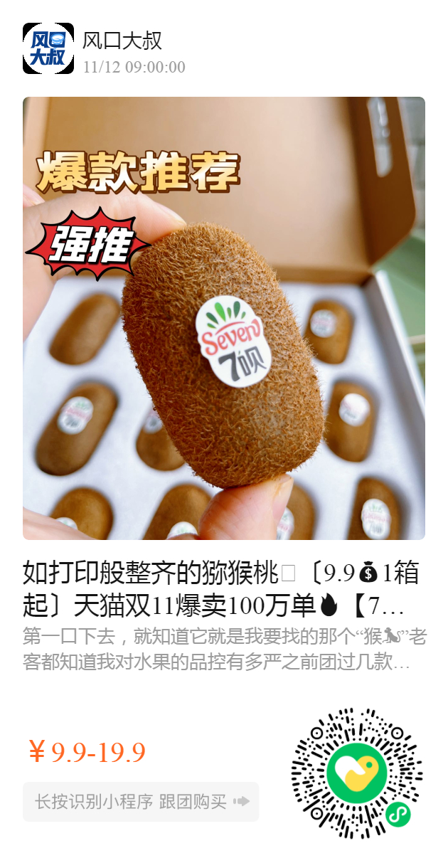 如打印般整齐的猕猴桃🥝〔9.91箱起〕天猫双11爆卖100万单【7呗猕猴桃🥝】传说中钻石酸甜比年年抢年年光野猕原香,一口入魂😋 🛡️果香浓郁,软糯多浆 🛡️经SGS检测,42项农残未检出‼️ 🛡️品质达到欧盟出口标准
