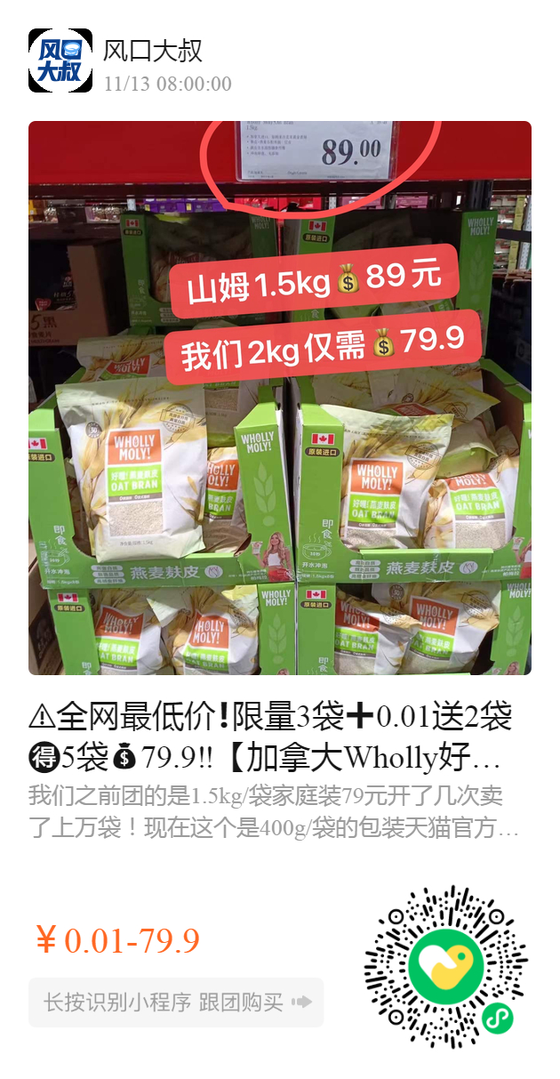 ️全网最低价❗️限量3袋➕0.01送2袋️5袋79.9‼️【加拿大Wholly好哩燕麦麸皮400g】❗️ Ole 山姆有售!帕梅拉同款燕麦麸皮! 越喝越瘦,大餐清肠涮脂,上称直接瘦两斤!