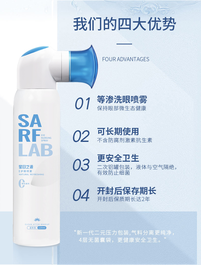 叶黄素 + VE + 角鲨烷 + 海藻糖 + 玻璃酸钠等多重护眼成分,微米级水雾,透进内膜让眼睛吃满精华,真空罐装,隔绝污染!