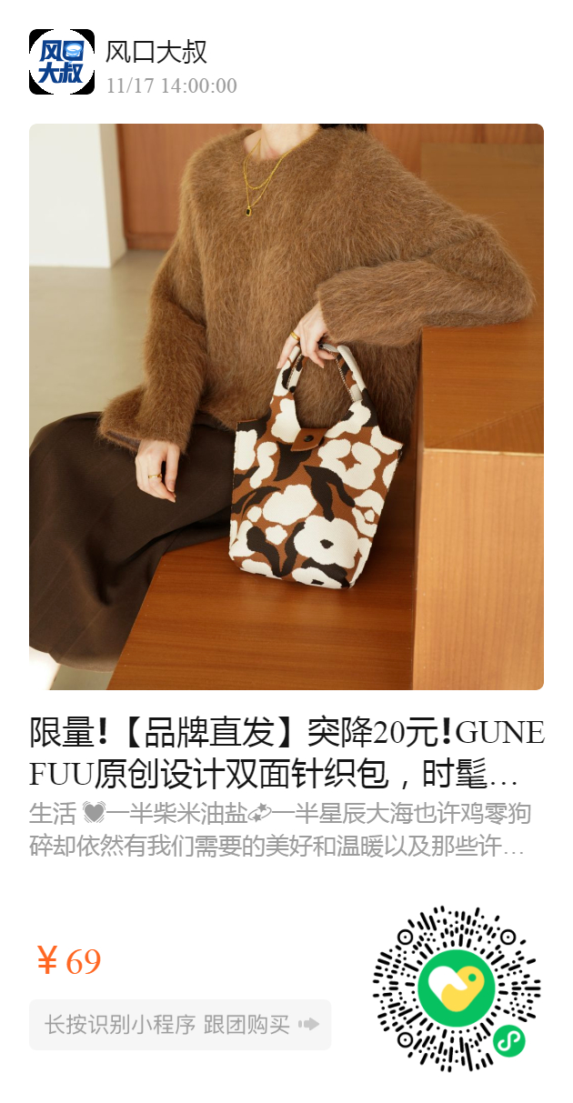 限量❗️【品牌直发】突降20元❗️GUNEFUU原创设计双面针织包,时髦精挚爱炸街高级感!