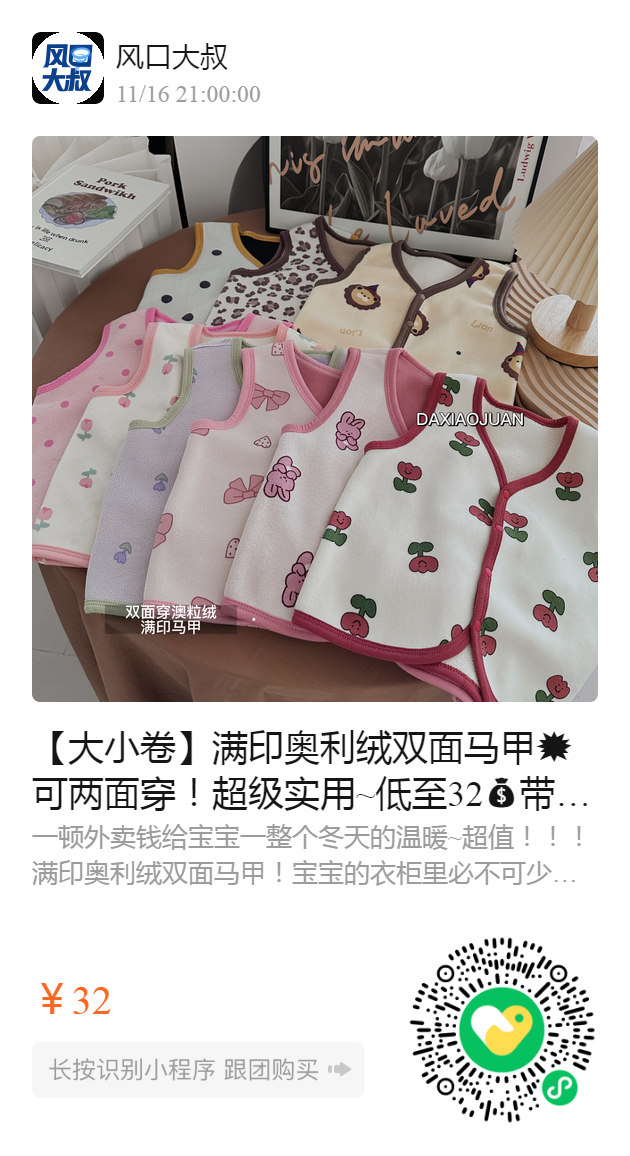 【大小卷】满印奥利绒双面马甲💥可两面穿!超级实用~ 低至32带回家!保暖时尚~按扣宝宝自己轻松穿脱!叠穿的不二之选~ 错过大小卷之前的马甲的妈妈们这次真不能错过啦!囤起来!!!