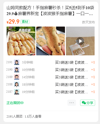 山姆同款配方!手指麻薯秒杀!买5送5到手10袋29.9麻薯界新宠【波波猴手指麻薯】一口一个的手指麻薯 糯叽叽惹人爱🉑️ Q弹软糯🍑奶香浓郁~!