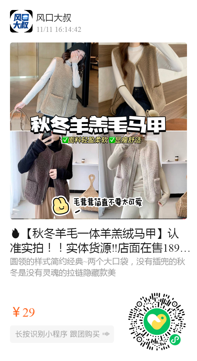 【秋冬羊毛一体羊羔绒马甲】认准实拍!!实体货源‼️店面在售189 ‼️福利价29包邮哦!!基础好穿不踩雷❗❗秋冬必备实用小马甲外套,面料轻盈柔软,显瘦舒适,毛茸茸的简直不要太可爱