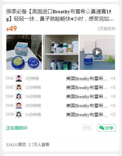 换季必备【美国进口Breathy布雷希鼻通膏15g】轻轻一抹,鼻子就能畅快4小时,感受宛如薄荷般的清凉! 天猫69元💥 💥 开团仅49元,送硅胶棒!美国线下yao房均有销售!孕妇🤰哺乳及三岁以上人群🉑️用 美国生产,原装进口,一般贸易,2025.4