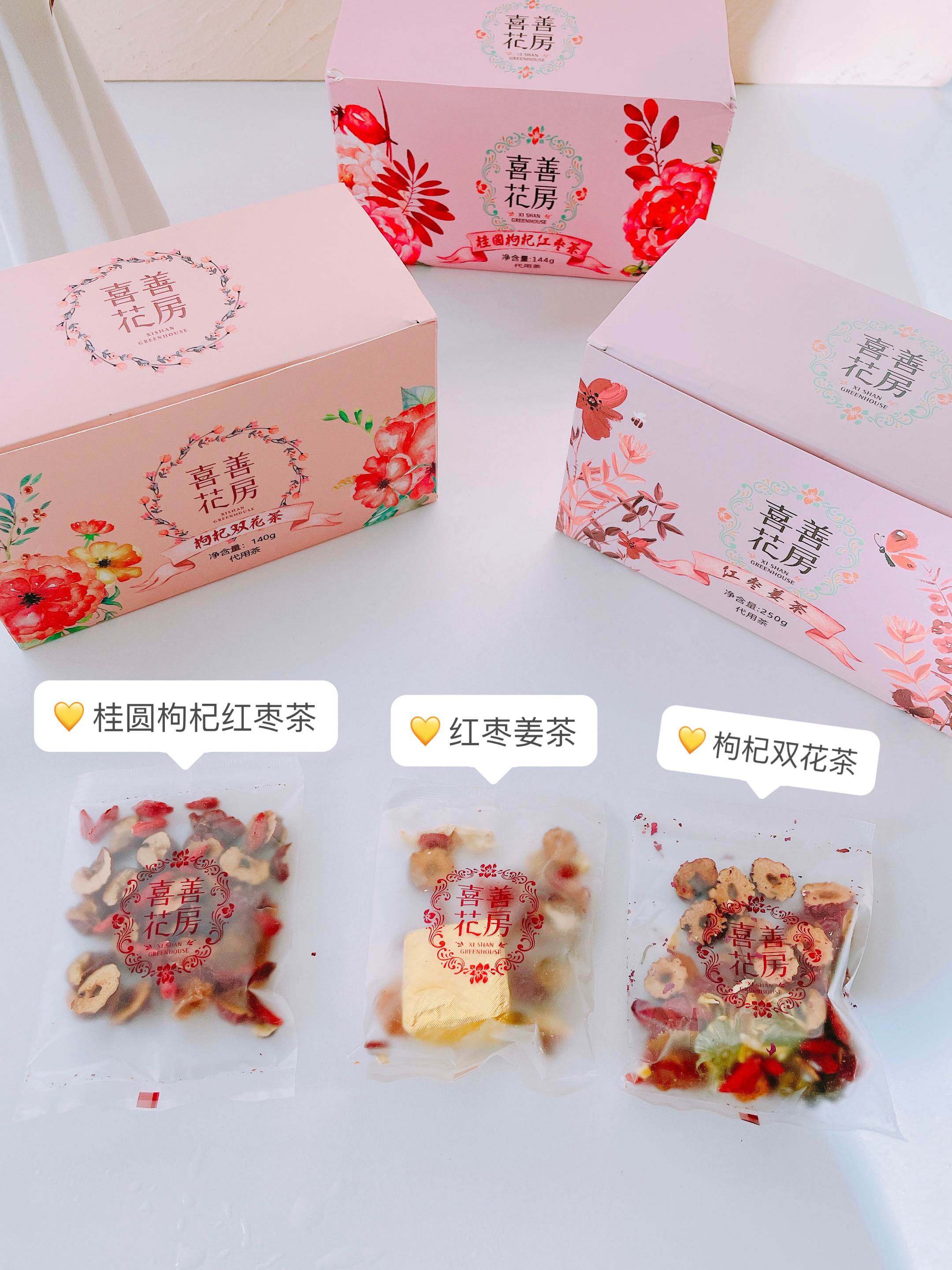 【品牌直发】冬季天冷就想喝暖暖的养生茶,喜善花房桂圆枸杞红枣茶//红枣姜茶140g!享受天然植物带来的无添加之美!一盒10包!
