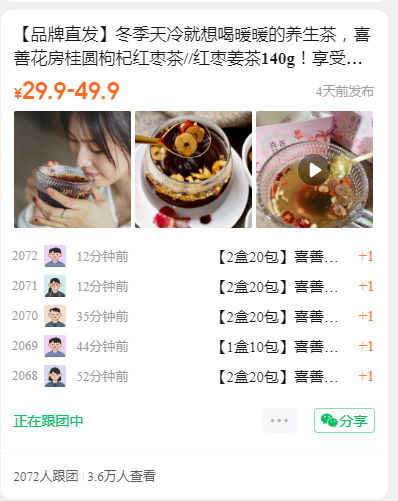 开 团 数:2072
