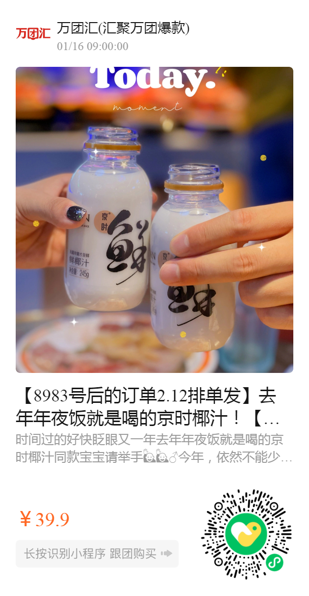 【8983号后的订单2.12排单发】去年年夜饭就是喝的京时椰汁!【顺丰包邮】一箱10瓶39.9!京时鲜榨椰汁🥥好喝到忘不了! 富含植物蛋白!老少皆宜不长胖,无菌冷灌,比某树更美味! 女孩子更要多喝椰汁,富含钾元素不容易水肿!冷藏味道更好哦!