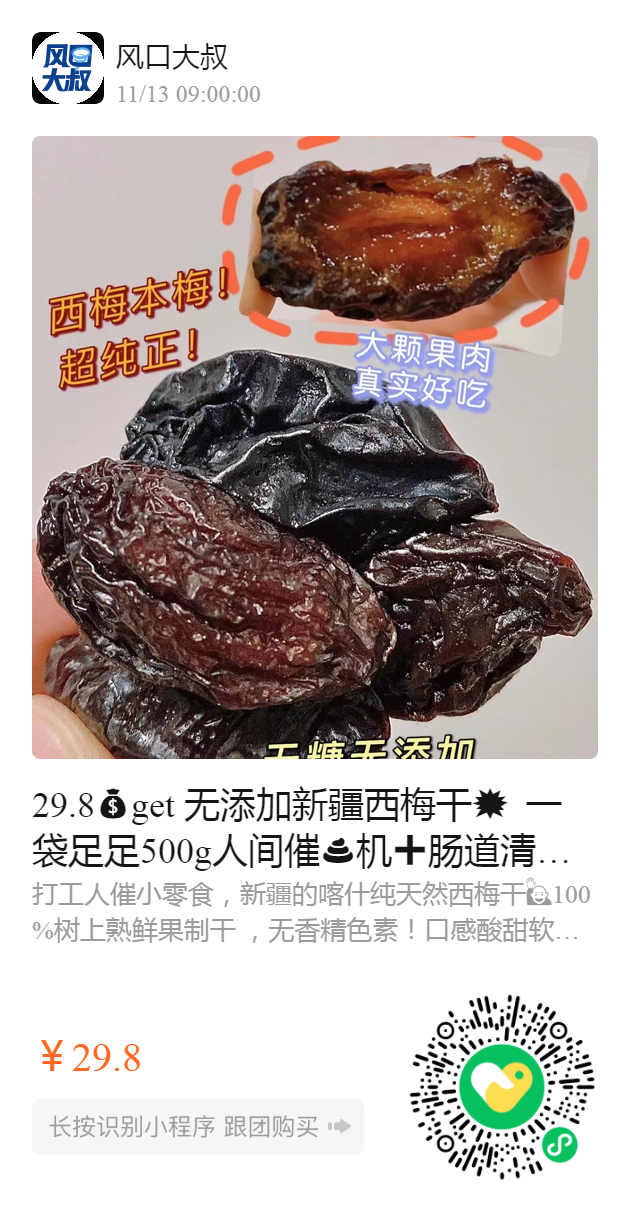 29.8get 无添加新疆西梅干💥 一袋足足500g人间催机➕肠道清道夫 🧓🏻老人/小孩/孕妇/健康人士放心享🤭