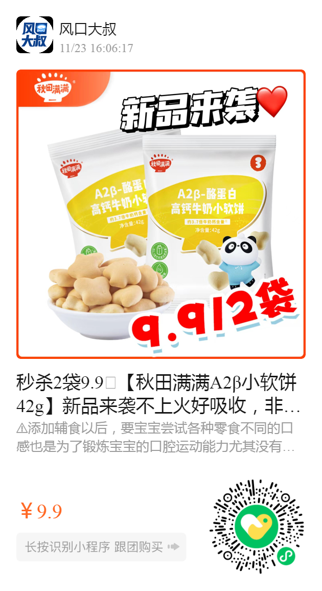 秒杀2袋9.9🧧【秋田满满A2β小软饼42g】新品来袭