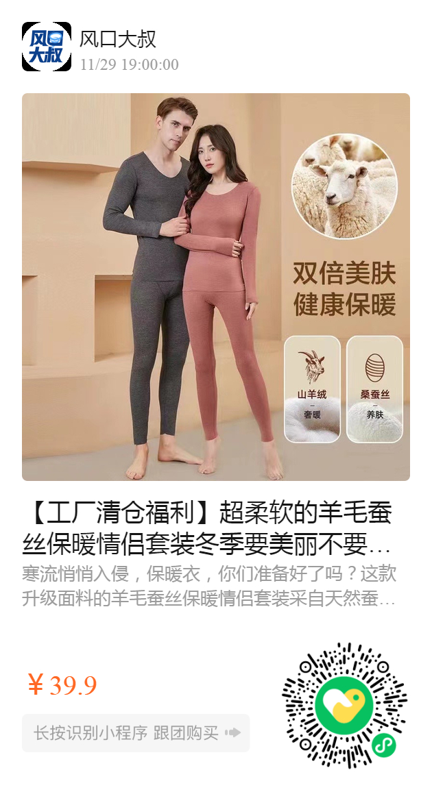 【工厂清仓福利】超柔软的羊毛蚕丝保暖情侣套装 冬季要美丽不要臃肿还要温暖,御寒高能宝藏套装双面磨绒+桑蚕丝+绵羊毛 聚热保暖,高弹无痕透气,身体的第二层肌肤,男女情侣款可选