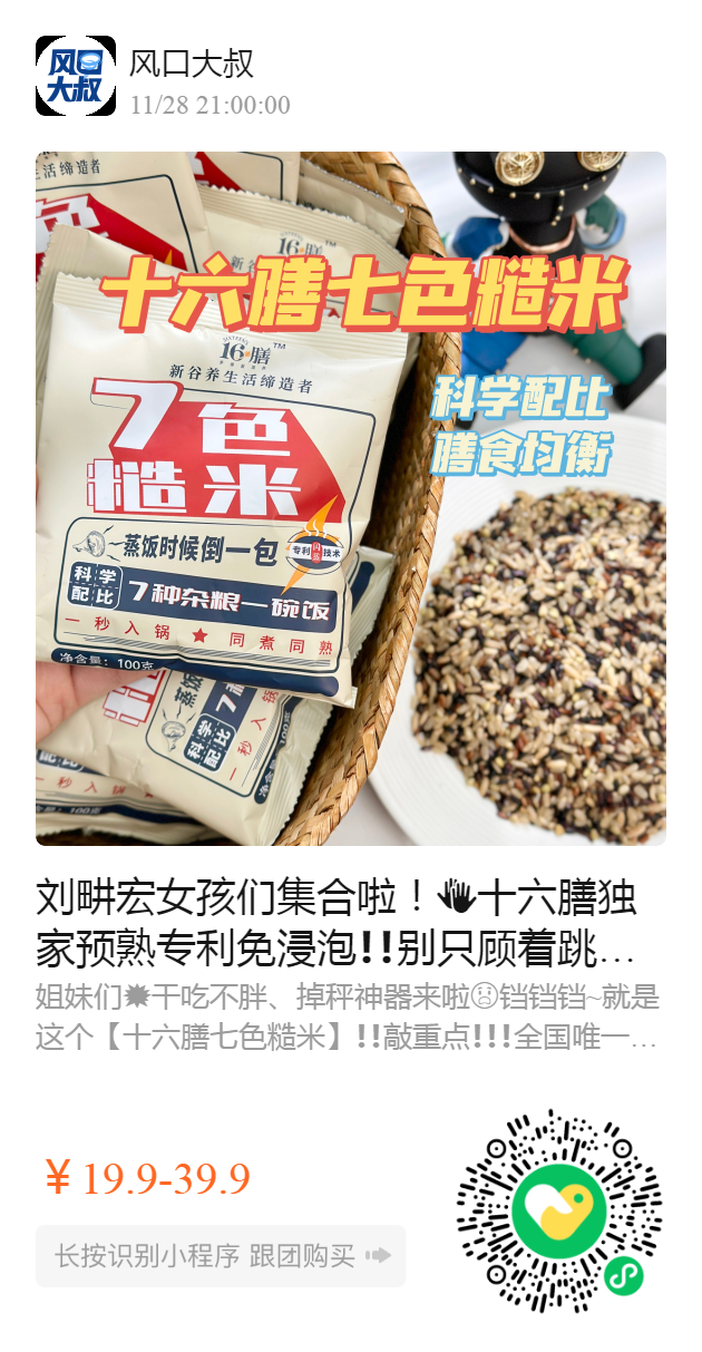 刘畊宏女孩们集合啦!十六膳独家预熟专利免浸泡❗️❗️别只顾着跳操啊,这款吃不胖的掉秤神器来喽【七色糙米】当季新米,7种健康食粮、科学配比~