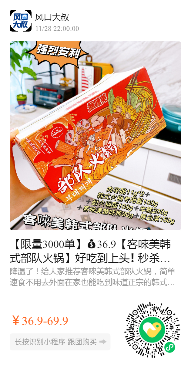 【限量3000单】36.9【客唻美韩式部队火锅】好吃到上头❗️ 秒杀韩料店,超便宜