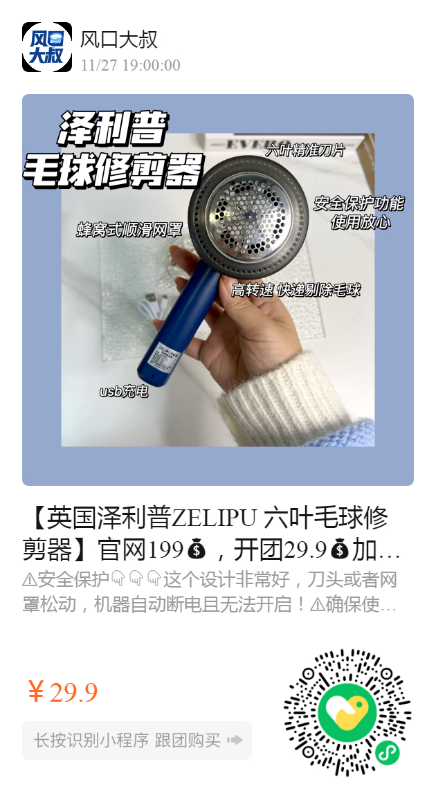 【英国泽利普ZELIPU 六叶毛球修剪器】官网199,开团29.9加赠原装刀头一组~