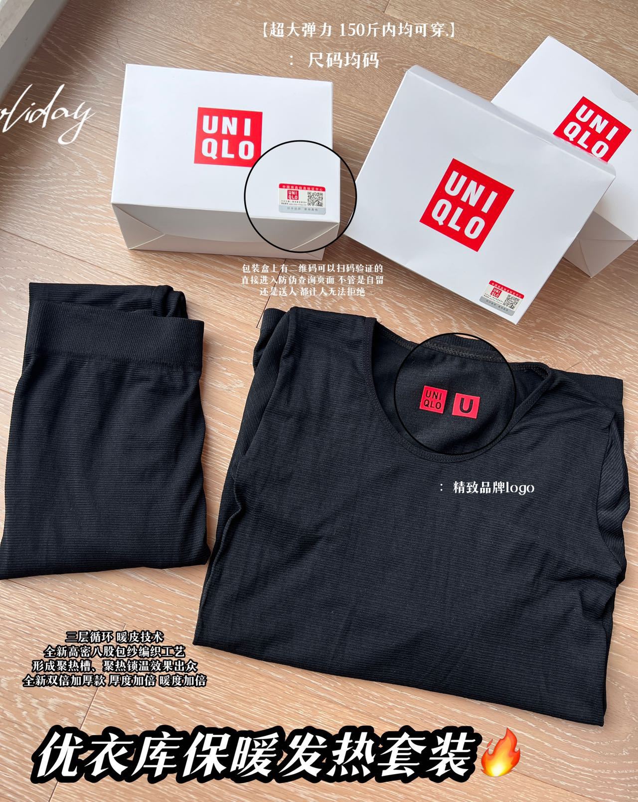 1-5556!🥵亏清10000套优衣库保暖发热套装出战‼️冬天必备|抗寒能力0℃3秒速热 猫店单件卖199开团价29.9上衣➕裤子!