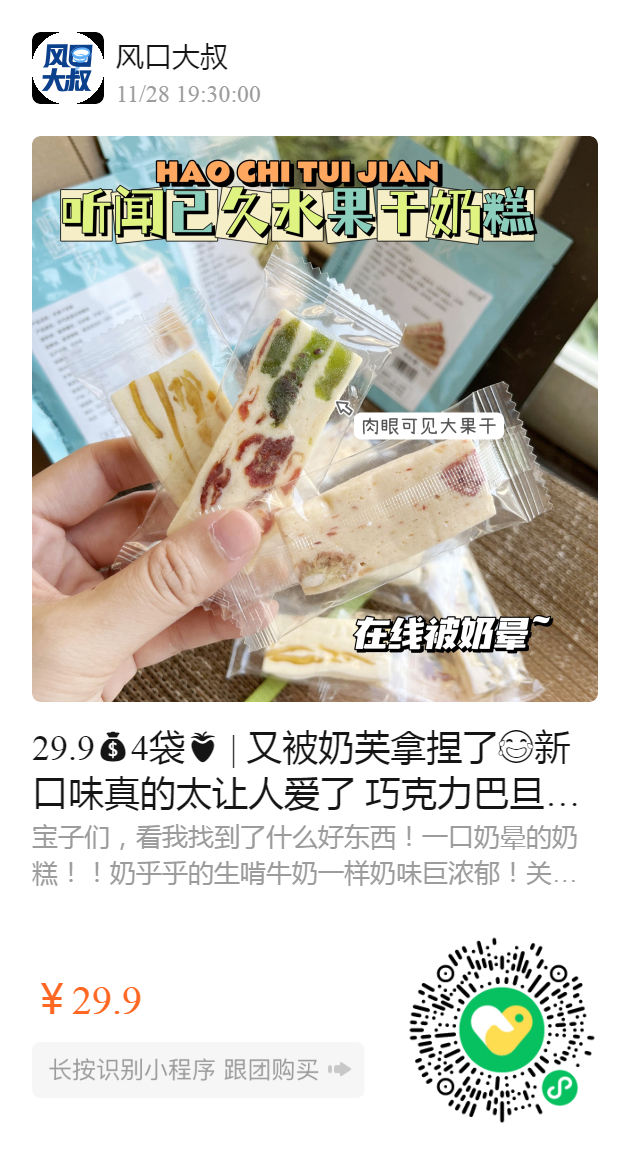 全脂奶粉➕新鲜水果/坚果干顶级配方 用料无敌! 每一口料都超实在 奶糕丝滑绵软 果干酸酸甜甜 好吃到爆