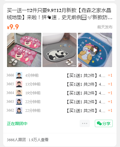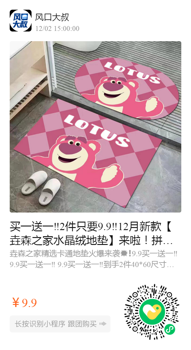 买一送一‼️2件只要9.9‼️12月新款【垚森之家水晶绒地垫】来啦!拼速,史无前例🆘 ✅新款防滑地毯宝藏式回馈新老客户~多款产品随意选择!40*60的大小长方形➕椭圆形一次搞定~ 🔗点击链接直接秒杀🔗