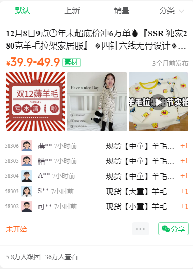 开 团 数:58306