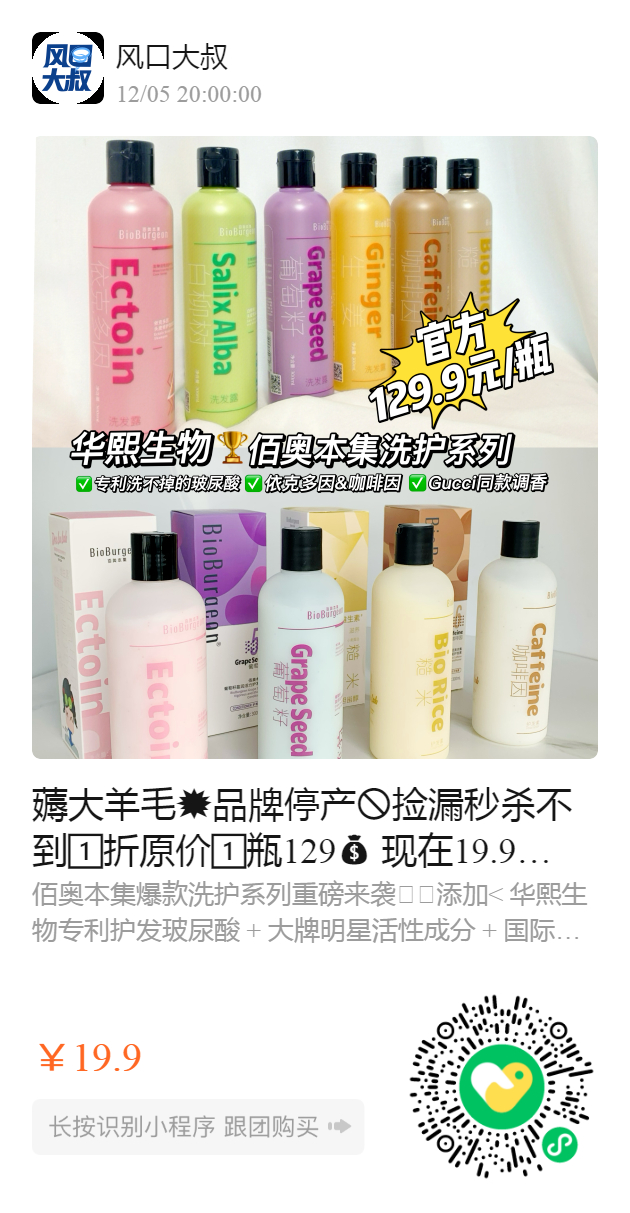 原价1️⃣瓶129 现在19.9洗发水 + 护发素