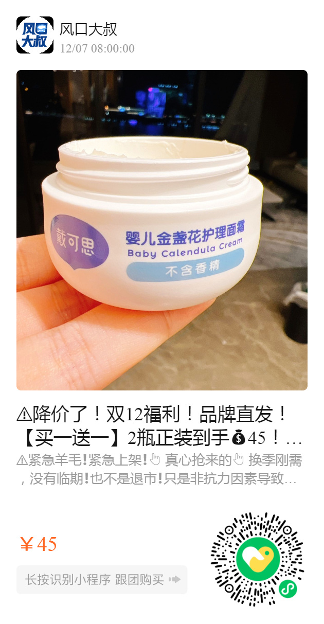 ️降价了!双12福利!品牌直发!【买一送一】2瓶正装到手45!【郭晶晶代言】 戴可思金盏花面霜出“小胖丁”便携款,官方售价59元/瓶!0岁即可用。 无香,不含任何添加剂,为宝宝的皮肤保驾护航,2024.10
