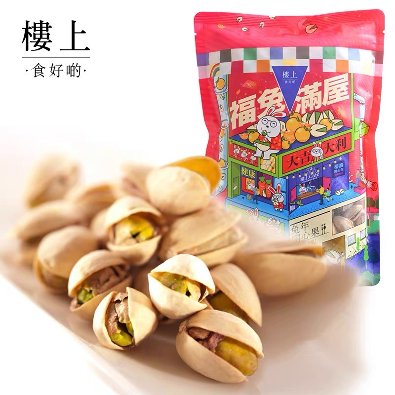 楼上终于抢到货了香港NO.1年底聚会必备啊!一年只开一次❗️新货️2袋仅128元✅兔年限定版❗️【香港楼上开心果】 ️旗舰店2袋150元福兔满屋✅无硫磺熏制❗️无漂白️颗颗饱满大粒❗️ 楼上品牌品质值得信赖❗️ 产品效期23年10月31日❗️非临期️带防伪码✅年货节#