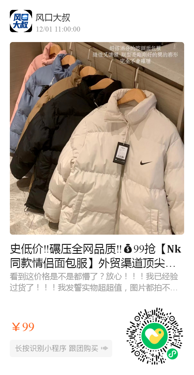 史低价‼️碾压全网品质‼️99抢【𝐍𝐤同款情侣面包服】外贸渠道顶尖货🙋质感不输专柜!