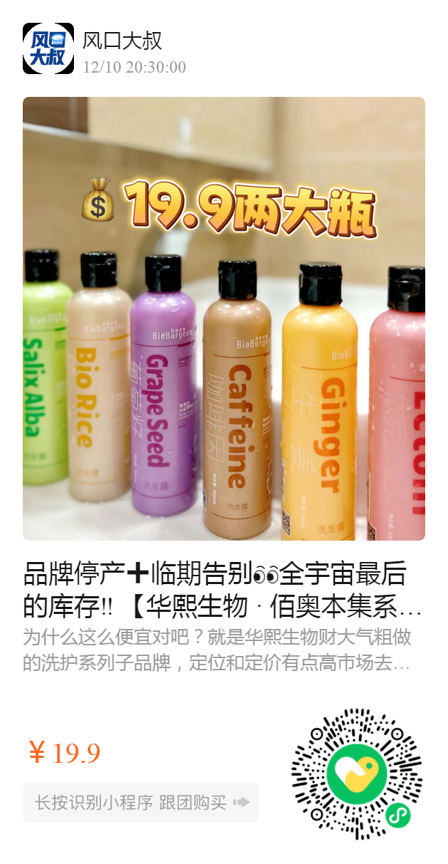 品牌停产➕临期告别全宇宙最后的库存‼️ 【华熙生物 · 佰奥本集系列洗发露+护发素】再降20元🚫捡漏团清仓秒杀