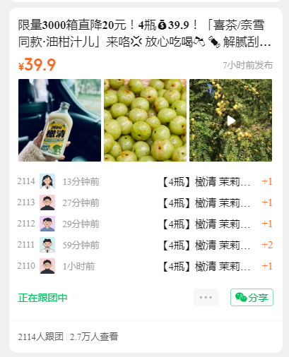 限量3000箱直降20元!4瓶39.9!「喜茶/奈雪同款·油柑汁儿」来咯 放心吃喝 🍖 解腻刮油!高端玻璃瓶装!橄清·茉莉滇橄榄汁!