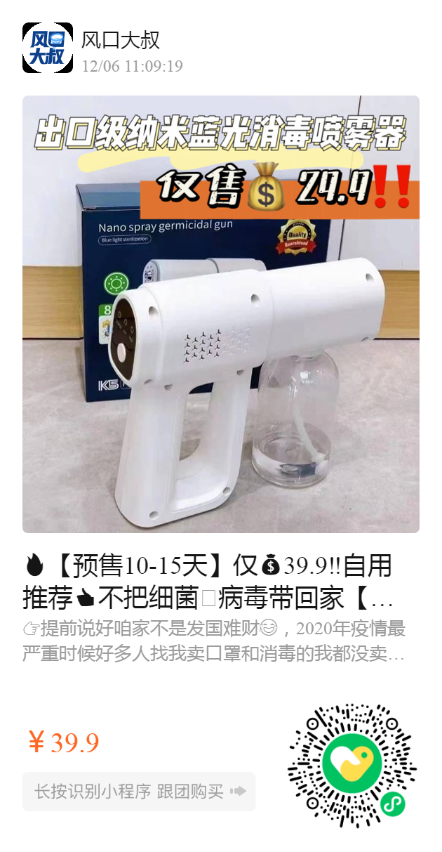 【预售10-15天】仅39.9‼️自用推荐不把细菌🦠病毒带回家【纳米蓝光消毒喷雾器】疫情刚需❗️