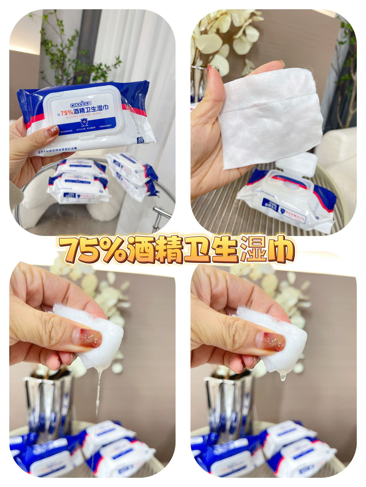 精选柔软无纺布,含75%的酒精浓度。温和有效杀菌‼️
