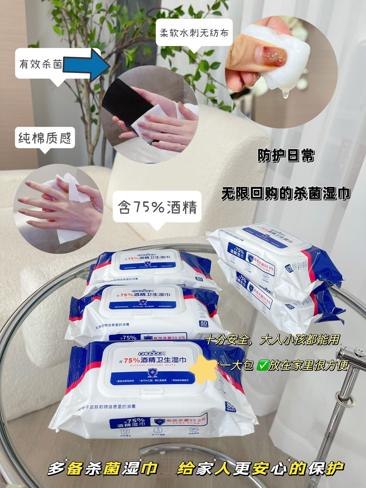 无处不在的细菌、病毒✖️备上这个具有消毒功能的湿巾真的很有必要🏻平常也可以拿来擦桌子、手机、电脑什么的也十分干净卫生。