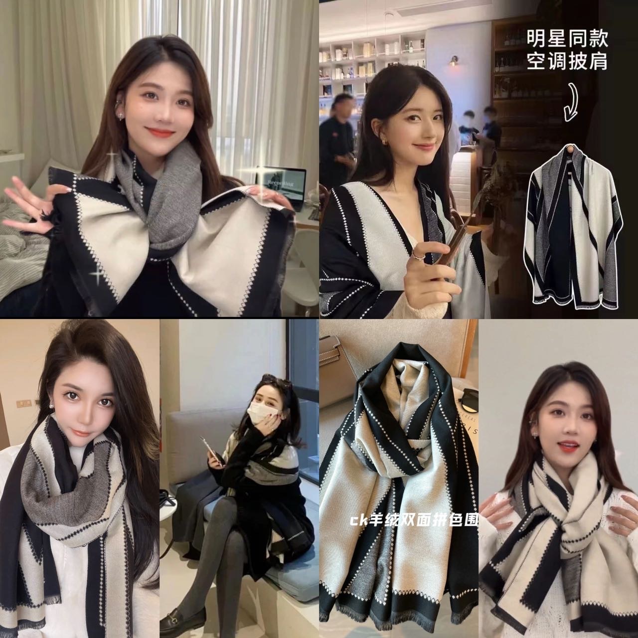 1-4922!💥现货2000条速发🧣什么❓CK三色围巾只要39包邮‼️赵露思把ta当披肩‼️附大量实拍