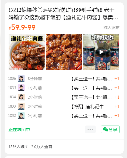 开 团 数:1836